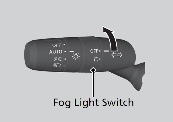 When the low beam headlights are on, turn the fog light switch on to use the fog lights.