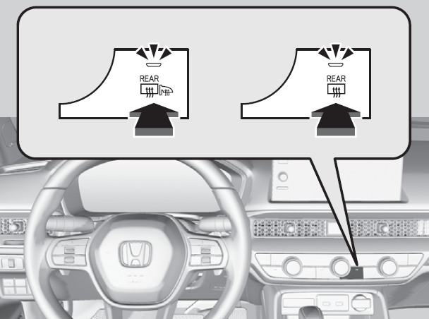 Press the rear defogger and heated door mirror* button to defog the rear window and mirrors* when the power mode is in ON.