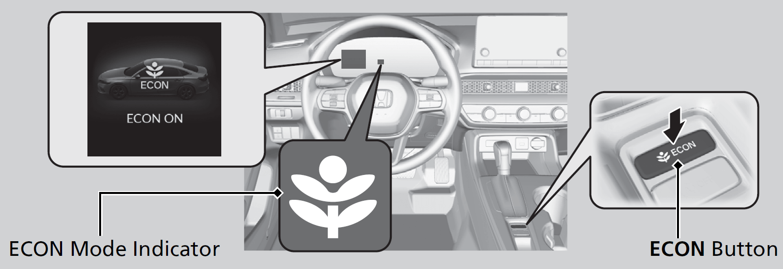 ECON mode helps you improve your fuel economy by adjusting the performance of the engine, transmission and climate control system.