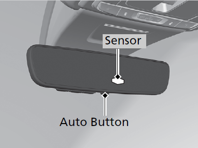 - When you are driving after dark, the automatic dimming rearview mirror reduces the glare from headlights behind you. Press the AUTO button to turn this function on and off. When activated, the AUTO indicator comes on.