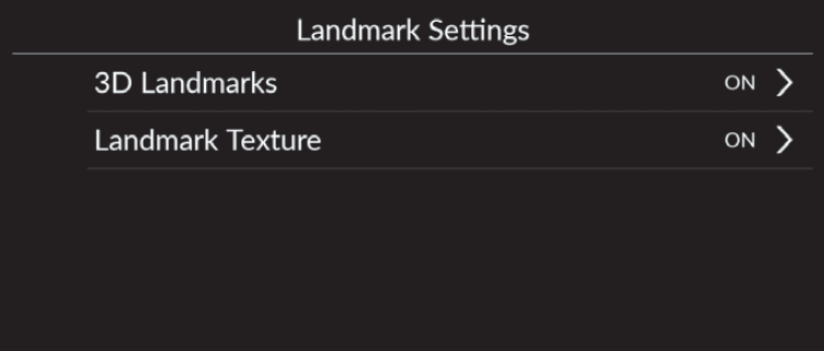 - ON (factory default): Displays the landmark texture on the map.