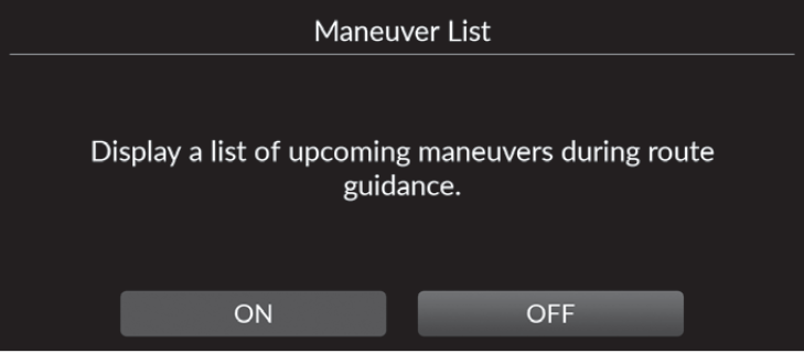 - ON: Sets to display the turn-by-turn instructions on the map.