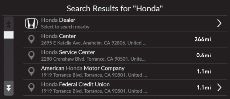 For more details about smartphone connection and how to use HondaLink®, see the Owner's Manual.If you roll the right selector wheel on the steering wheel, select Navigation & Compass, and then press the right selector wheel while on the map screen, the following items are available. Roll and press the right selector wheel to select the items.- Go home