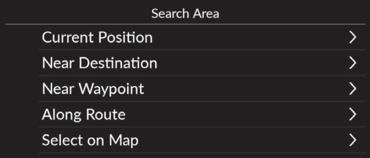 - Near Waypoint: Searches near your waypoint, current destination, or current location.