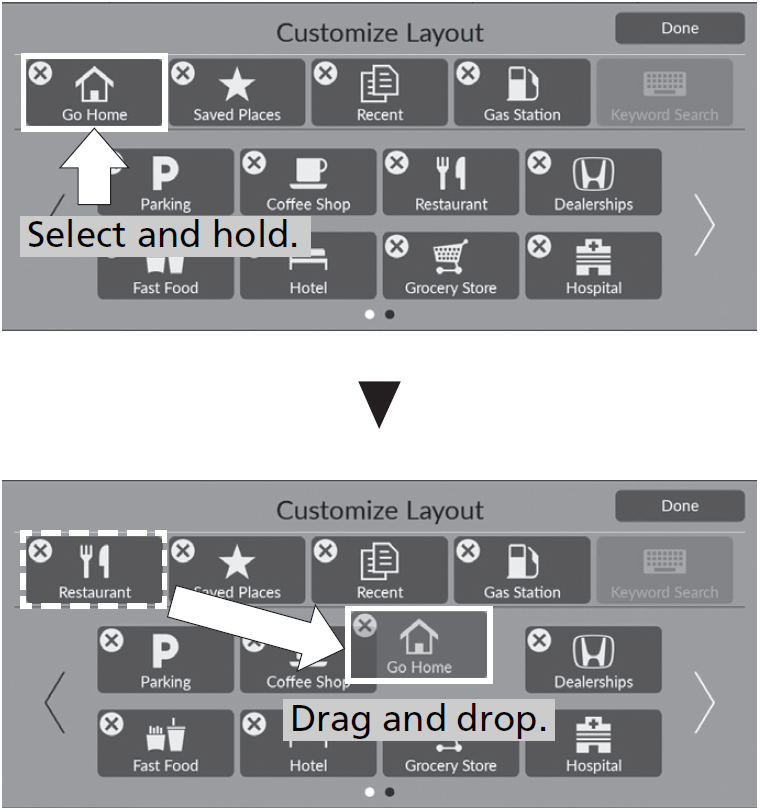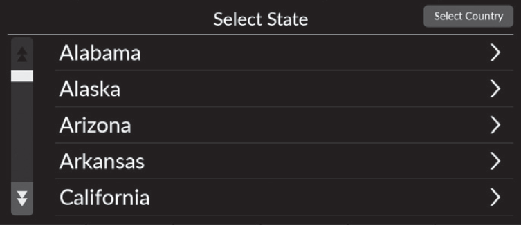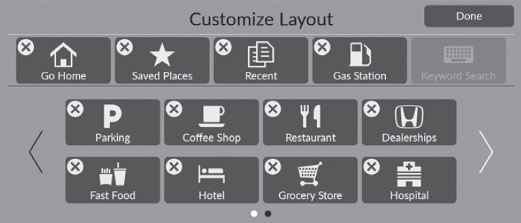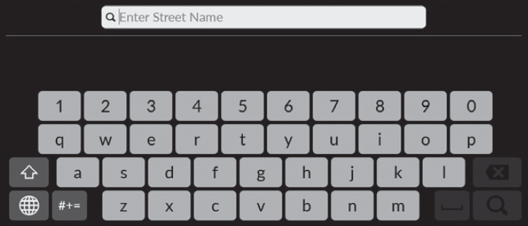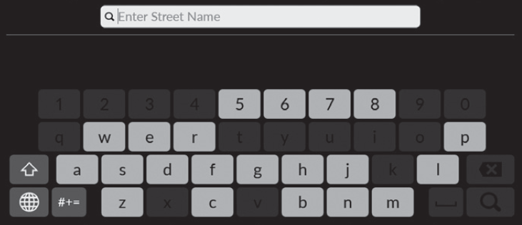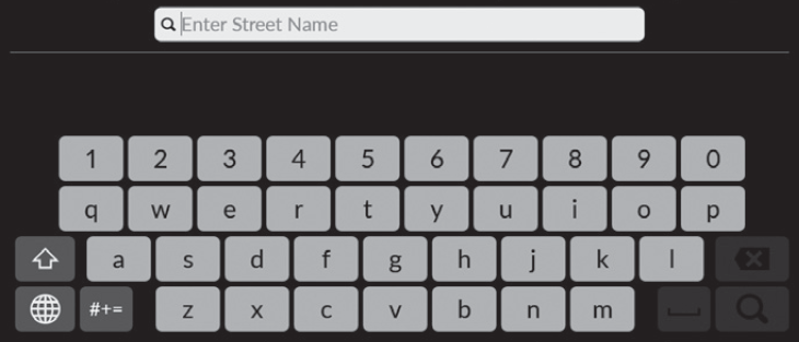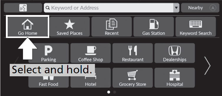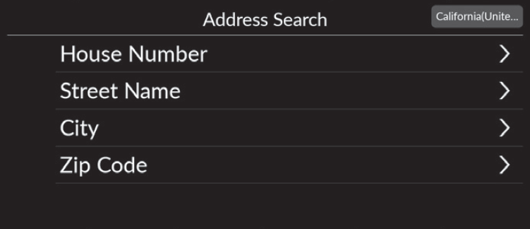 - Keyword or Address: Sets a destination by entering a category, name, address, intersection (Street 1 / Street 2), city name, or state name.