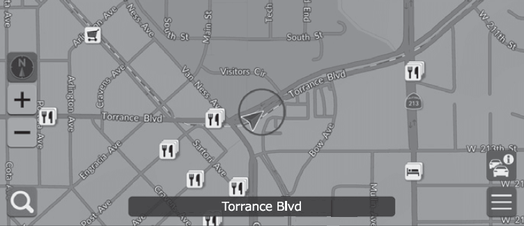 - Select any point on the map, a street, intersection, or category icon.