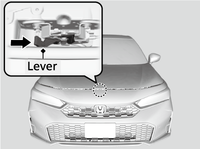 - Push the hood latch lever (located under the front edge of the hood to the center) to the side and raise the hood. Once you have raised the hood slightly, you can release the lever.