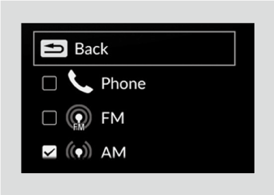 - Roll the left selector wheel to scroll between audio sources, then press the left selector wheel to check or uncheck them.