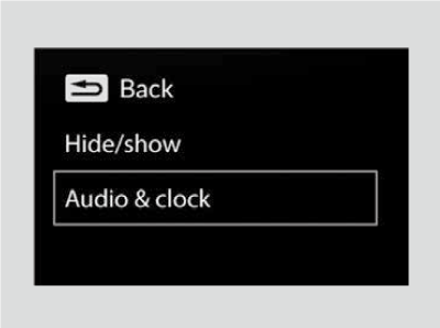 - Roll the left selector wheel to scroll to select Audio & clock, then press the left selector wheel.