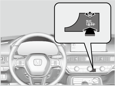 Press the rear defogger and heated door mirror button to defog the rear window and mirrors when the power mode is in ON.