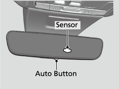 When you are driving after dark, the automatic dimming rearview mirror reduces the glare from headlights behind you. Press the AUTO button to turn this function on and off. When activated, the AUTO indicator comes on.