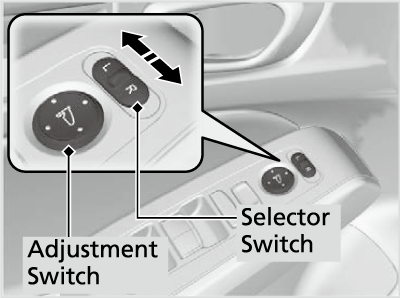 L/R selector switch: Select the left or right mirror. After adjusting the mirror, return the switch to the center position.