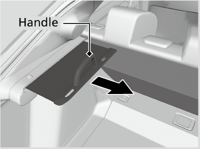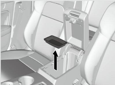 Pull the handle to open the console compartment.