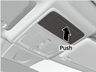 To open the sunglasses holder, push and release the indent. To close, push it again until it latches.