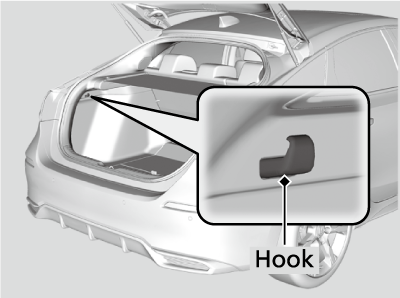 The cargo hook in the cargo area can be used to hang a light items.