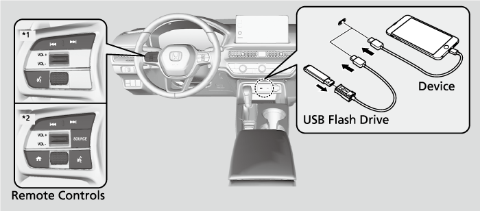 The audio system features AM/FM radio. It can also play USB flash drives, iPod, iPhone, and Bluetooth® devices.