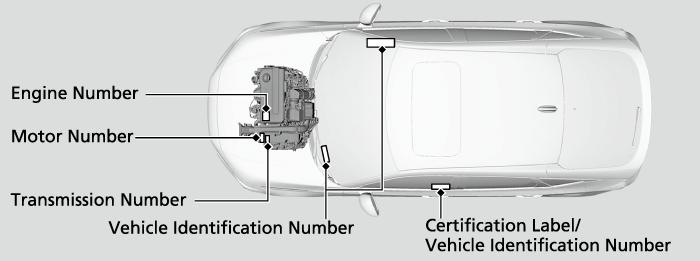 The locations of your vehicle’s VIN, engine number, motor number, and