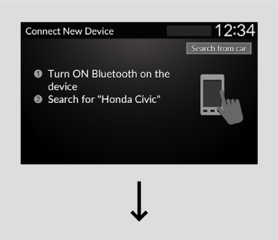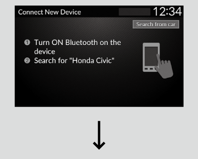 If your phone doesn’t appear on the audio/information screen, select Search from phone and search for Bluetooth® devices using your phone. From your phone, select Honda Civic.