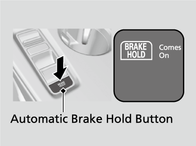 - Press the automatic brake hold button with the brake pedal depressed.