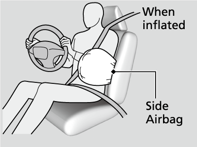 The side airbags help protect the torso and pelvis of the driver, front passenger, or an outer rear seat occupant during a moderate-to-severe side impact.