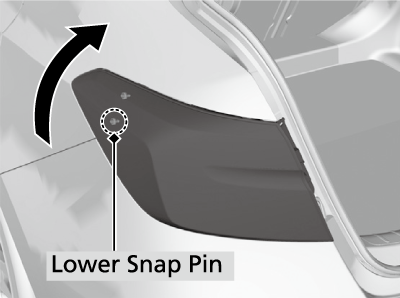 - Grasp underneath the taillight and rotate it upward to release the lower snap pin.