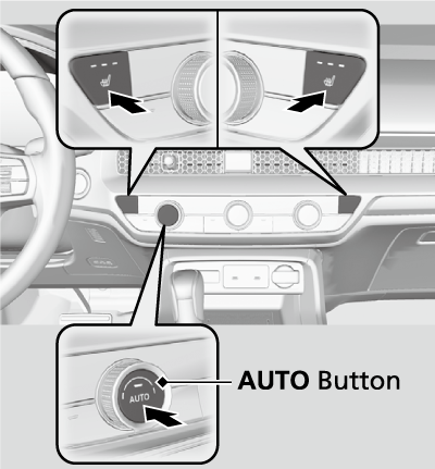 Both the air conditioner and seat temperature will automatically change to the setting most suitable to the ambient environment.- When any seat heater button is pressed, settings will switch to manual mode.