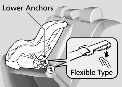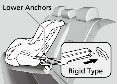A LATCH-compatible child seat can be installed in either of the two outer rear seats. A child seat is attached to the lower anchors with either the rigid or flexible type of connectors.