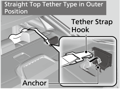- Route the tether strap over the head restraint. Make sure the strap is not twisted.
