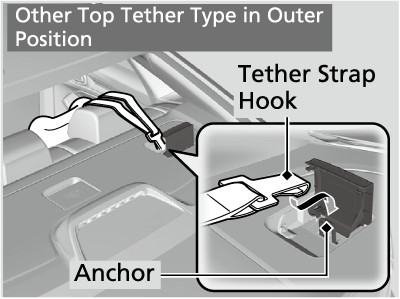 - Route the tether strap over the top of the head restraint. Make sure the strap is not twisted.