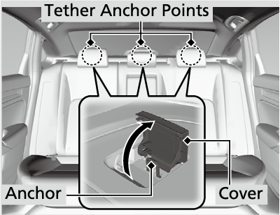 - Open the tether anchor cover behind the head restraint.