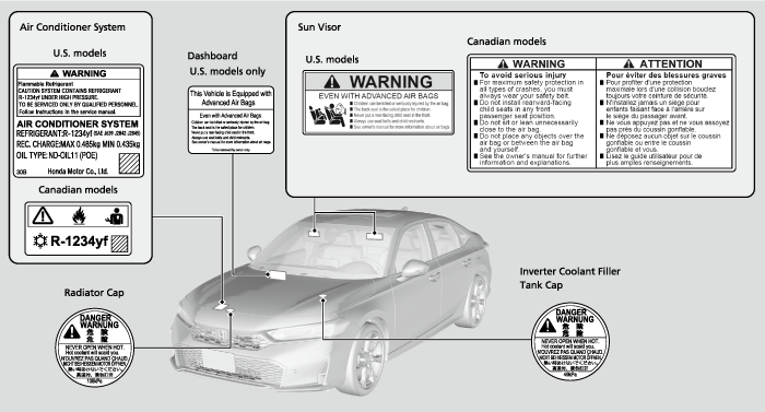 If a label comes off or becomes hard to read (except for the U.S. dashboard label, which may be removed by the owner), contact a dealer for a replacement.