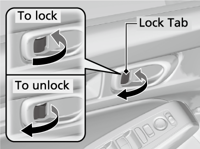 When you lock the door using the lock tab on the driver’s door, all of the other doors and fuel fill door lock at the same time.