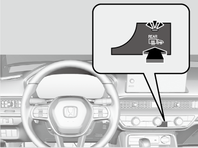 Press the rear defogger and heated door mirror button to defog the rear window and mirrors when the power mode is in ON.