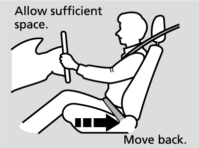 Always sit as far back from the front airbags as possible while maintaining control of the vehicle.