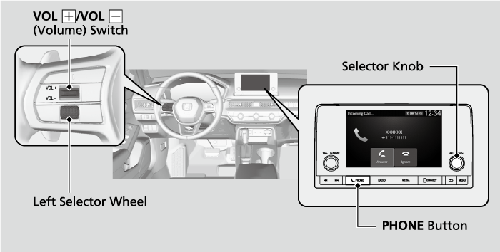 Left Selector Wheel: While receiving a call, the incoming call screen is displayed on the driver information interface. You can pick up the call using the left selector wheel.