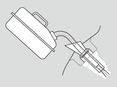 - Place the end of the funnel on the lower part of filler opening, then insert it slowly and fully.