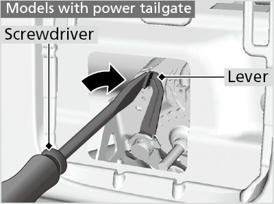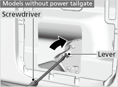 - To open the tailgate, push the tailgate while pushing the lever to the right with the flat-tip screwdriver.