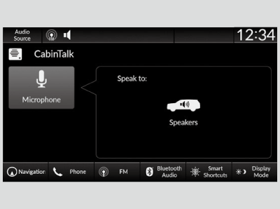Your audio system allows your, or the front passenger’s voice to be broadcast to the second and third row seat’s passengers using the rear speakers.