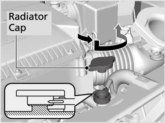 - Push down and turn the radiator cap counter-clockwise to remove it.