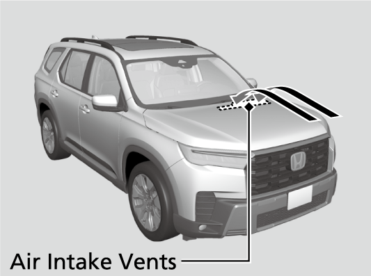Lock the doors when washing the vehicle. Do not spray water onto the fuel fill door directly. A high-pressure spray may cause it to open.Do not spray water onto the capless unit when the fuel fill door is open. It can cause damage to the fuel system or engine.If you need to lift the wiper arms away from the windshield, first set the wiper arms to the maintenance position.