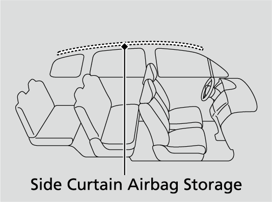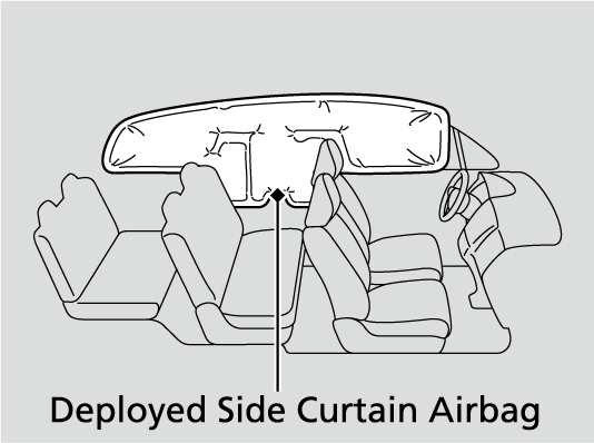 To get the best protection from the side curtain airbags, occupants should wear their seat belts properly and sit upright and well back in their seats.Do not attach any objects to the side windows or roof pillars as they can interfere with the proper operation of the side curtain airbags.If the impact is on the passenger’s side, the passenger’s side curtain airbag deploys even if there are no occupants on that side of the vehicle.If the SRS control unit senses that your vehicle is about to rollover, it immediately deploys both side curtain airbags and activates the seat belt tensioners for the front seats and the second row outer seats.