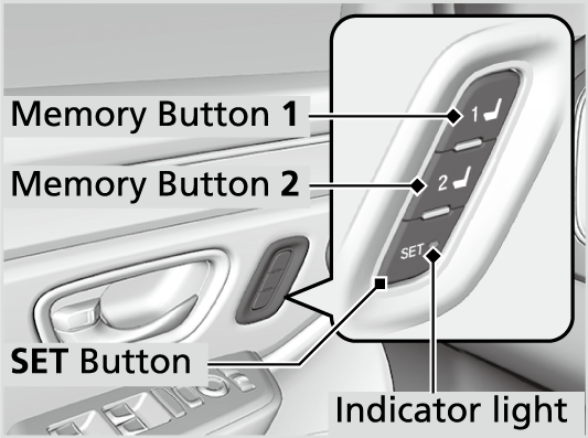 - Set the power mode to ON. Adjust the driver’s seat and door mirror to the desired position.