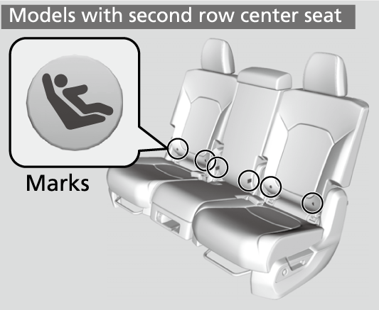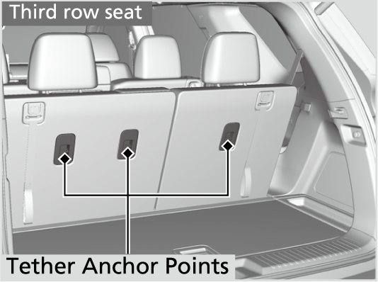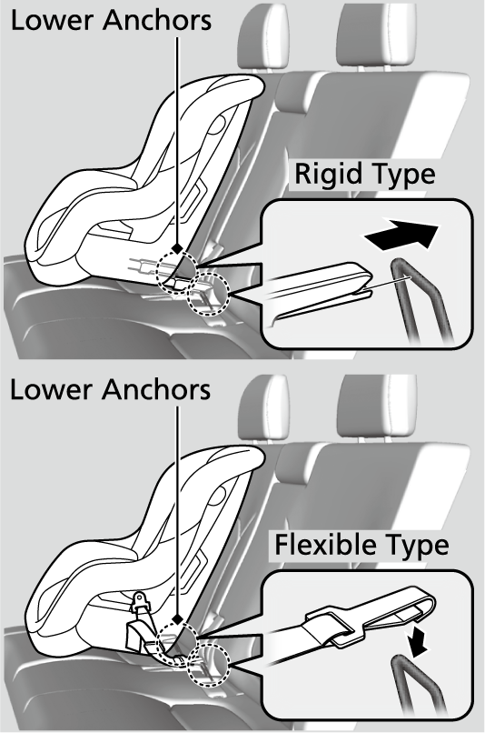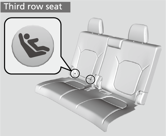 A LATCH-compatible child seat can be installed in the marked second and third row seats. A child seat is attached to the lower anchors with either the rigid or flexible type of connectors.