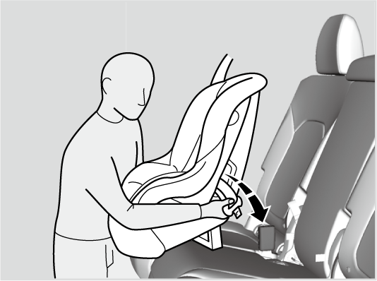 - Route the seat belt through the child seat according to the seat manufacturer’s instructions, and insert the latch plate into the buckle.