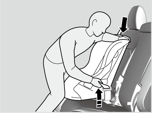 - Push the child seat firmly into the vehicle seat while tightening the vehicle seat belt to remove excess slack.