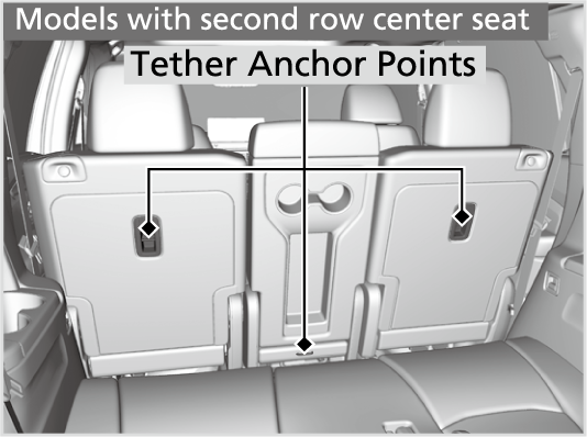 Center position- Lower the center head restraint to its lowest position, then route the tether strap over the top of the head restraint and secure the tether strap hook to the anchor.