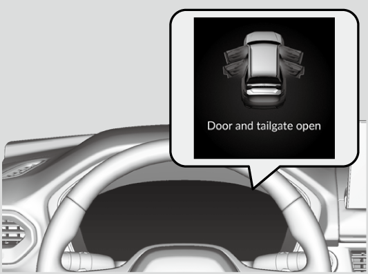 If the door and/or tailgate open message appears on the driver information interface, a door and/or the tailgate is not completely closed. Close all doors and the tailgate tightly until the message disappears.
