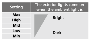 U.S. modelsYou can adjust the auto light sensitivity as follows: