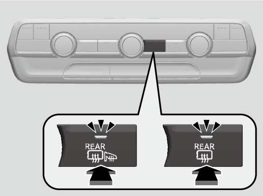 Press the rear defogger and heated door mirror* button to defog the rear window and mirrors* when the power mode is in ON.