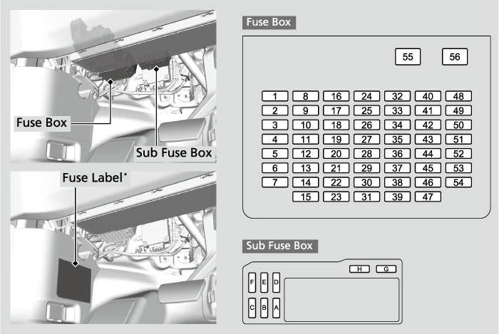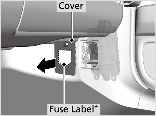 Fuse locations are shown on the label* on the back of the cover or the image below. Locate the fuse in question by the fuse number.